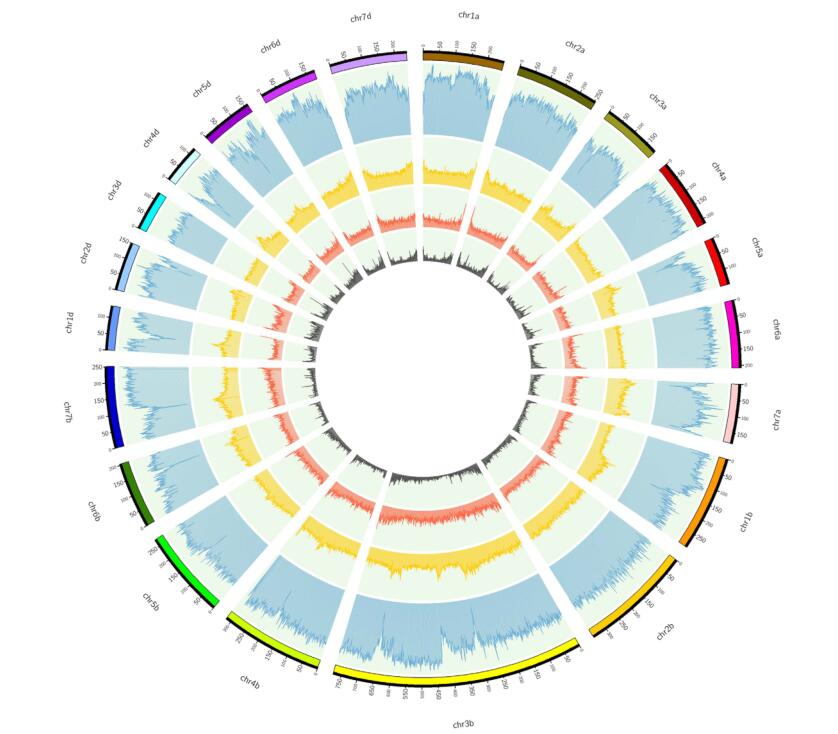 Figure . The distribution of microsatellites, genes and TEs in the genome of wheat.