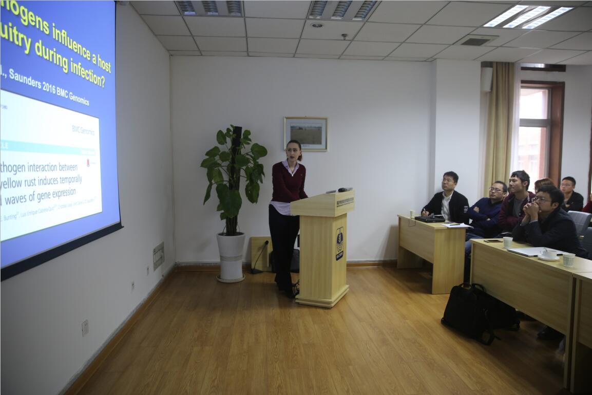 10月18日,英国John Innes Center基因组分析中心项目负责人Diane Saunders教授和南京农业大学教授董莎萌应邀来我室进行学术交流及访问,分别为广大师生做了题为 “Genome guided interrogation of a cereal invader”和“植物疫病菌无毒基因的生物学功能初探”的学术报告,并与我室康振生教授团队就小麦条锈菌基因组学、效应蛋白生物学和条锈菌群体进化等研究进行了深入交流。